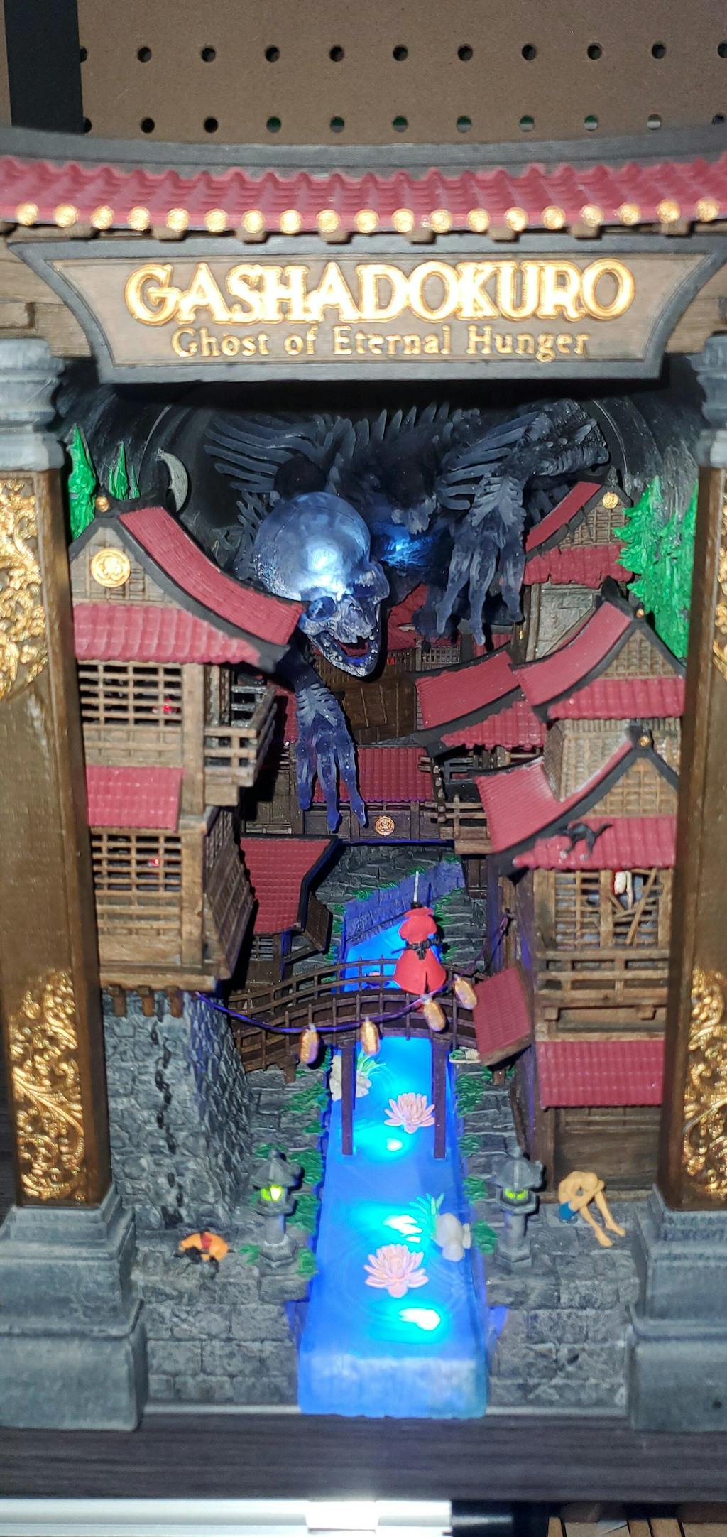 Designed for an immersive experience, this book nook features LED lighting, powered by a discreet 9V battery compartment at the back, adding a chilling ambiance to the nightmarish scene. Perfect for collectors or Halloween enthusiasts, this piece captures the dark allure of Japanese folklore.
