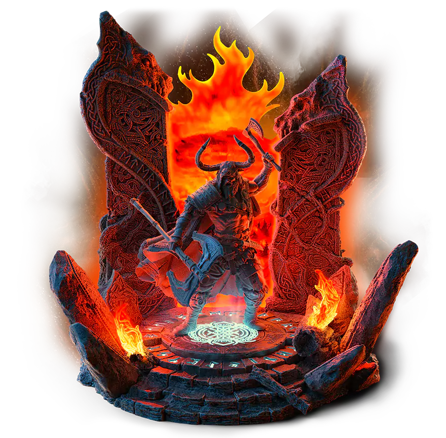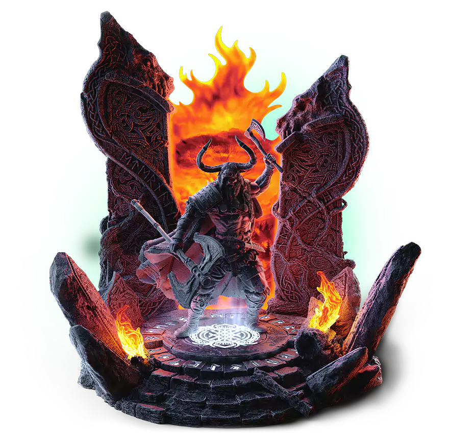Amidst the icy winds and snow-capped peaks, lies a sacred portal, etched with runes and ancient symbols, signaling the entry to Valhalla. With this diorama base, bring Voljaryk to the very footsteps of the gods, where valorous souls are beckoned and tales of heroism transcend time.