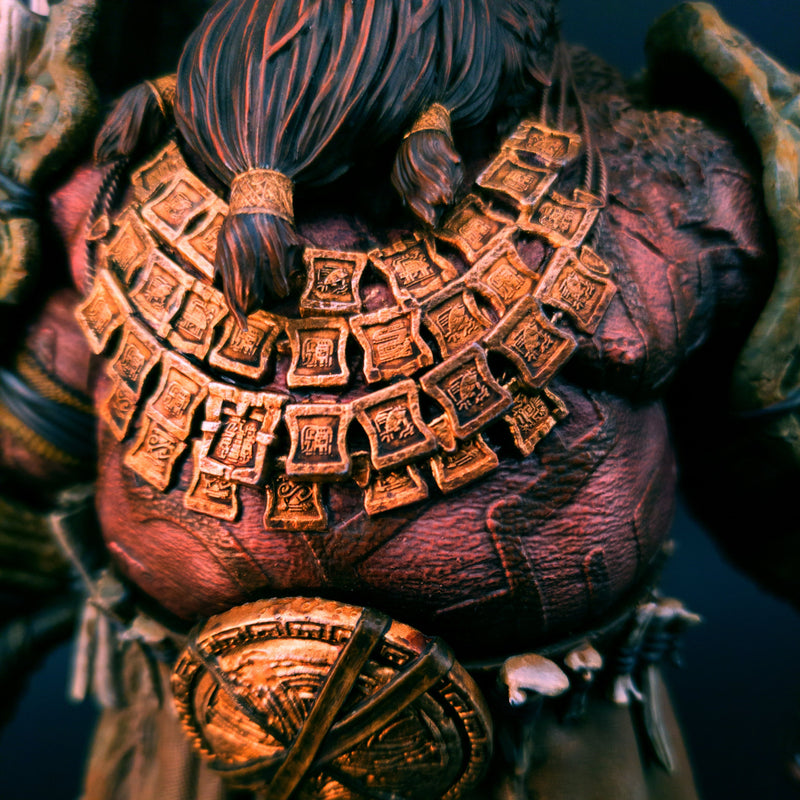 In the scorched remnants of Tollan's once-hallowed halls, Nkosi moved with a purpose, his rage palpable in every thunderous step. With every wisdom keeper he laid low, the weight on his heart grew, yet his resolve never wavered. These were the Asturians responsible for his son’s demise, and they would all pay. But as he approached the threshold of the mysterious portal, a soft cry pierced the air. From the shadows, the wide eyes of a youngling met his. A child, innocent yet heir to the lineage he so despised. Nkosi hesitated, a tumult of emotions raging inside him. Memories of Xola's laughter, their shared moments, flooded his mind. For an instant, he saw his son in the child before him. Yet, the knowledge that this child, if left to grow, could one day harness the forbidden magical capabilities of Aya and return to challenge him, gnawed at Nkosi's conscience. The child, sensing the looming threat, quickly retreated into the portal. Torn between his paternal instincts and the need to safeguard his world, Nkosi, with a heavy heart, decided he couldn't take the risk. Accompanied by his fiercest warrior, he ventured into the portal, ready to confront whatever lay ahead and ensure the lineage that threatened his people's future was extinguished.